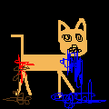 [mario] oh dear.. poor fluffy. probably lying brain dead and confused on the floor next to his little cat dish.. of course, the food dish would be stained and dirty from his constant and consecutive regurgitations, with his little mouth hanging wide open, a wierd, foamy, froth pooring out.. and his little water dish.. dirtied from his constant discharges from his little-